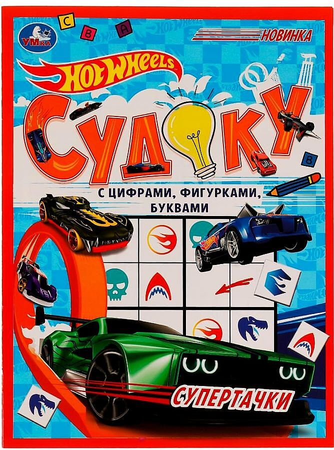 Судоку с цифрами, фигурами и буквами «Hot Wheels. Супертачки» ТМ «УМка» непременно понравится маленькому любознайке: — интересные задания. — подсказки. — красочные страницы с изображением крутых гоночных машинок.