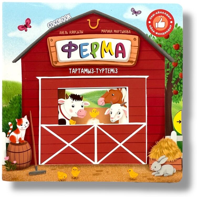 Қозғалмалы бөліктері бар «Ферма» кітабы кітап оқу процесін жандандыра түседі! Қарап қана қоймай, кітаптың әртүрлі бөлігін қозғалтамыз, айналдырамыз, ашамыз. Көңілді өлең жолдары мен үлкен иллюстрациялары кітаптың әр бетін мультфильм секілді қызық қылады. Балақай фермадағы жануарлармен: сиырмен, итпен, балапандармен танысады. 1 жастан 5 жасқа дейінгі балаларға арналған. Баланың тілі мен зейінін жақсы жаттықтырады. Қазір балалар іш пыстыратын кітаптарды емес, назарын баурап алатын кітаптарды оқығысы келеді – біздің «Ферманы» оқып, қолынан тастамай жүретіні анық!