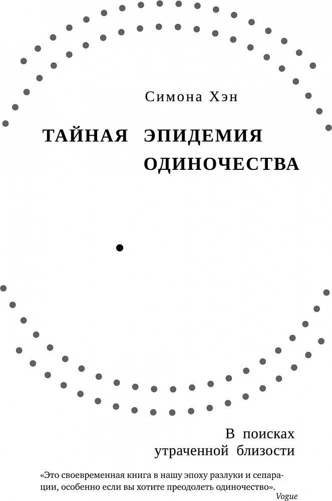 Одиночество — новая эпидемия XXI века, которая незаметно проникла в каждый уголок мира. Прислушайтесь к себе: как часто среди информационного шума повседневности вы обнаруживаете себя в совершенной изоляции? В этой книге психолог и коуч Симона Хэн, переплетая личные истории с подкрепленными фактами исследованиями и практическими упражнениями, дарит возможность каждому дать отпор одиночеству, преодолеть отчужденность и предпринять активные шаги к построению глубоких, полноценных отношений.