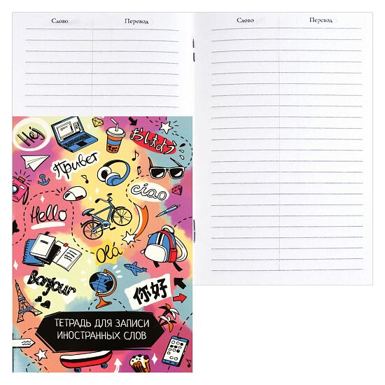 Тетрадь для записи иностранных слов арт. 67524 ПУТЕШЕСТВИЕ ПО МИРУ /А6, 32 л. обложка - мелованный к