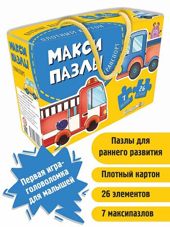 Развивающая игрушка пазл с тематикой транспорт - пазл maxi с крупными деталями для развития мелкой моторики рук, логики, памяти и расширения словарного запаса у малышей. Пазл для малышей изготовлен из прочного жесткого картона с матовым покрытием. Пазлы детские подходят для детей от 2 лет и помогают активно развивать мышление. Игра детская поможет в игровой форме изучать виды транспорта, придумывать истории о них, запоминать части и учить звуки, которые издают машины. Это отличная тренировка по методике монтессори. Игра для детей отлично подходит для совместных игр с родителями. Для ребенка это идеальный первый пазл - крупные детали легко брать в руку малышу, они не теряются. Пазлы детские макси - это компактная удобная игра в дорогу и в путешествие, либо на подарок девочке или мальчику. Пазл IQ имеет большие детали, которые легко брать в руку малышу, они не теряются. Игрушка детская дает возможность фантазировать и сочинять разные истории для активного развития речи. Лучший подарок детям - это игрушка, помогающая развиваться. Творческий набор - это недорогой хороший подарок в детский сад на утренник. Такая игрушка станет чудесным подарком на день рождения, для младшего школьного возраста. Развивающая игра станет любимым занятием Вашего ребенка! Такой подарочный набор будет отличной покупкой для внучки или внука. Игра для мышления учит находить нужный элемент из множества похожих и располагать его в нужном месте. Приятным бонусом от игрового набора для родителей будет стремление детей к порядку, после игры можно сложить в коробку. Такая настольная игра положительно влияет на развитие восприятия. Игра для малыша разнообразит будни ребенка и подарит много свободного времени его родителям!
