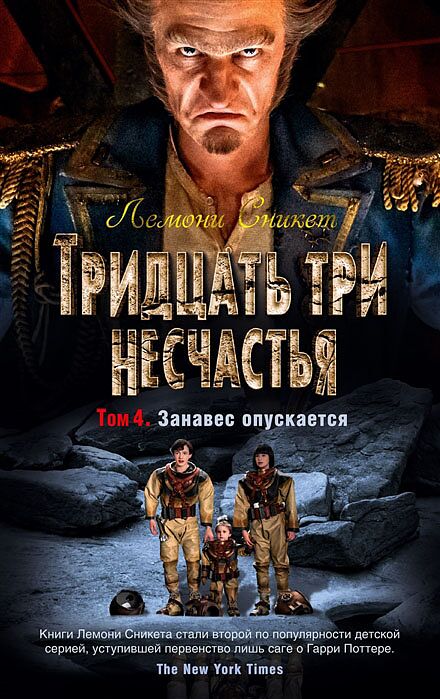 Дорогой читатель, похоже, ты одолел все предыдущие книги цикла «Тридцать три несчастья», а значит, уже догадываешься, что справедливость в жизни бодлеровских сирот едва ли восторжествует. Если ты еще надеешься, что Вайолет, Клаус и Солнышко вот-вот раскроют тайну исчезновения своих родителей, то спешу тебя огорчить. Подобные истории обычно заканчиваются на редкость чудовищно. В наших силах лишь сочувственно наблюдать за тем, как Бодлеры в поисках ответов сначала оказываются на субмарине, потом предстают перед Верховным судом, а после терпят кораблекрушение во время шторма, но, несмотря ни на что, не теряют веры в светлое будущее. Мрачные юмористические истории о приключениях детей Бодлер стали настолько популярны во всем мире, что легли в основу фильма «Лемони Сникет. 33 несчастья», в котором сыграли Джим Керри, Джуд Лоу и Мэрил Стрип. Совсем недавно компанией «Netflix» был снят и одноименный сериал. Главные роли в нем исполнили Нил Патрик Харрис, Малина Вайсман и Луи Хайнс. Очередной сезон появился на экранах в январе 2019 года. В четвертый том «Занавес опускается» вошли следующие повести: «Угрюмый грот», «Предпоследняя передряга» и «Конец».