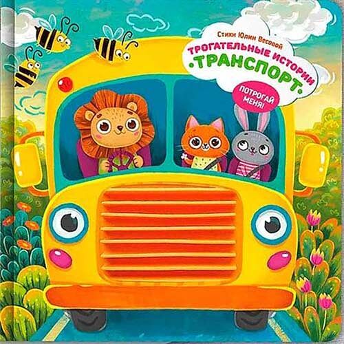 Интерактивная книга Трогательные истории Транспорт Счастье внутри 1067-6. Трогательные истории в забавных стихах о транспортных средствах от Юлии Весовой. Это - серия инновационных тактильных книг для детей, которые не только расскажут о различных видах транспорта и их особенностях, но и дадут прикоснуться к персонажам книг. Какая поверхность у колёс? Какая оболочка у воздушного шара и космического аппарата? Потрогай и узнаешь! Развивающие книжки-игрушки для детей с тактильными вставками из силикона и меха станут прекрасным оригинальным подарком для малыша на праздник день рождения, ведь они развивают воображение, речь, память, моторику ребёнка и тактильное восприятие.