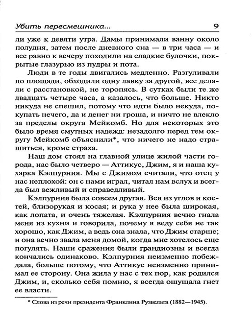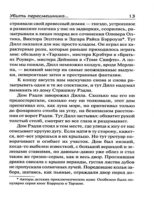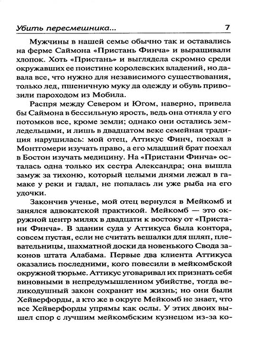 Убить пересмешника (1960 г.) - пронзительная история семьи, живущей в вымышленном маленьком городке на юге Америки, в штате Алабама. Время действия - 30-ые годы XX века, период Великой Депрессии. Рассказ ведется от лица восьмилетней девочки. Главная героиня Джин Финч живет с отцом Аттикусом, адвокатом, и братом Джимом. У них с братом есть друг Дилл, и один враг на троих - сосед по прозвищу Страшила. Мир глазами ребенка - сложный, противоречивый, неоднозначный, - проносится перед читателем.Все смешалось в этом мире: детские страхи и взрослые проблемы, жажда справедливости и горькая реальность, расовые проблемы американского юга и сложности отдельно взятой семьи. В центре сюжета - судебный процесс над чернокожим парнем, его обвиняют в изнасиловании, которого он не совершал. Адвокатом выступает отец Джин Аттикус и борется изо всех сил, чтобы справедливость восторжествовала. Об авторе Харпер Ли - гений одной книги, роман...