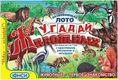 Развивающее лото для 2-5 игроков в возрасте от 3 до 7 лет.Домовитая белка и чистюля енот, смешная обезьяна и серьезный царь зверей лев, важный индюк и красавец петух… Эта игра доставит удовольствие всей семье! Красочные рисунки позволят быстро и хорошо запомнить внешний вид животных, а загадки - узнать их образ жизни, повадки и привычки.Интеллектуальное развитие взрослого человека закладывается в раннем возрасте. Оно начинается с познания окружающего мира.А познание во время игры становится для детей радостным и легким!Количество игроков: 2-5.Материал: картон.Упаковка: картонная коробка.Для детей от 3 до 7 лет.Сделано в России.