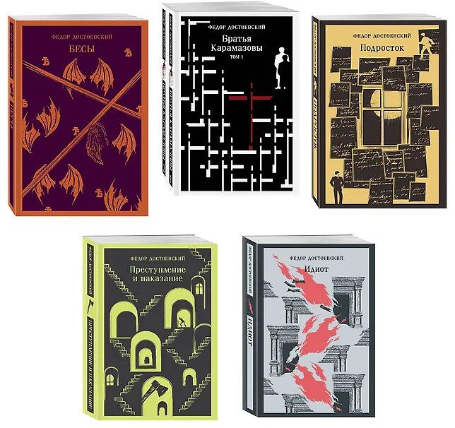«Преступление и наказание» Ф.М. Достоевский — мастер психологической прозы XIX века, признанный во всем мире. Его работы переведены более чем на 170 языков. «Преступление и наказание» — высочайший образец криминального романа. Достоевский поставил вопросы, и по сей день не решенные. Кем должен быть человек: «тварью дрожащей», как говорит Раскольников, или «Наполеоном»? Произведение написано в 1866 году, но до сих пор остается самой читаемой в мире книгой и входит в большинство школьных программ по литературе. «Братья Карамазовы (в двух томах)» «Братья Карамазовы» — итоговый роман Ф.М. Достоевского, в нем сконцентрировались вся художественная мощь писателя и глубина прозрений религиозного мыслителя. Внешне развиваясь по законам детектива, роман с первых строк вышагивает из заданных жанровых рамок. И пока мы бродим по провинциальному городку Скотопригоньевску и ждем ответа на классическое «Кто убийца?», автор мастерски обнажает метафизику русской души и задает нам главные философские вопросы человечества: о вере и свободе воли, о Боге и бессмертии, о первопричинах и конечной цели бытия. У каждого из братьев Карамазовых есть свой ответ на них, определяющий содержание их жизни. Есть ли ответ у вас? «Идиот» Князь Лев Николаевич Мышкин возвращается в Россию после пребывания в санатории и оказывается втянутым в сложный любовный треугольник. Его искренние порывы и чувства сталкиваются с жестоким миром ревности, самолюбия и пресыщенности окружающих. Такие насыщенные сюжеты всегда «обречены» вызывать в читателе автоматический эффект присутствия. Секрет не только и не столько в событийных перипетиях, сколько в великолепно выписанных персонажах и электрических разрядах между ними. Суммой всех слагаемых становится превращение эффекта присутствия в «эффект соучастия»: погружаясь в роман, вы становитесь сначала невидимым свидетелем событий, а потом сживаетесь с главным героем так прочно, что смотрите его глазами и меряете его мир биением собственного сердца. И тогда возникает главный вопрос: как выжить в этом мире, который казался вымышленным и вдруг стал таким реальным, и как здесь не сойти с ума. В конце концов, может ли общество определять степень чьей-то «нормальности»? Вообще, кто из нас князь Мышкин? «Подросток» Роман «Подросток» входит в знаменитое «пятикнижие Достоевского», наравне с «Преступлением и наказанием», «Идиотом», «Бесами» и «Братьями Карамазовыми». Он считается самым хаотичным романом Федора Михайловича, примечательно, что его первоначальное название — «Беспорядок». 19-летний Аркадий Долгорукий, незаконнорожденный сын дворянина Андрея Петровича Версилова, после окончания гимназии приезжает в Петербург в поисках богатства и независимости. Он оказывается втянутым в череду семейных интриг и становится участником «некрасивой» истории с компрометирующими письмами. Поиски смысла жизни приводят его к осознанию важности нравственного выбора и необходимости нести ответственность за свои поступки. «Бесы» «Бесы» — одно из наиболее трагических и до страшного пророческих произведений Федора Михайловича Достоевского. В одном губернском городе на исходе лета внезапно объявляется загадочный и притягательный Николай Ставрогин со своим суетливым товарищем Петром Верховенским, а затем и его мнимая жена Хромоножка