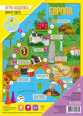 Эта полезная развивающая игра поможет заботливым родителям расширить знания детей о Европе, потренировать зрительную память и научить счёту самых маленьких игроков. По пути к финишу вас ждёт множество интересных фактов о странах, народах, названиях национальных блюд, красочные иллюстрации и, конечно же, захватывающие задания. В ней могут участвовать от 2 до 4 игроков. Добро пожаловать в игру, отважные путешественники!