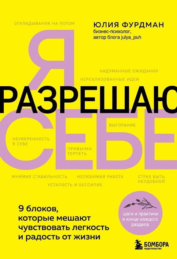 Нереализованные идеи Нелюбимая работа Надуманные ожидания Мнимая стабильность Усталость и бессилие Привычка терпеть Неуверенность в себе Откладывания на потом Выгорание Страх быть неудобной Быть супермамой, умелой хозяйкой, самой заботливой дочерью и лучшей женой, всегда прекрасно выглядеть и постоянно совершенствоваться в работе — действительно ли стремление быть во всем идеальной приближает нас к счастью или же, наоборот, только мешает его ощутить? Бизнес-психолог и популярный блогер Юлия Фурдман рассматривает в этой книге 9 препятствий, которые отделяют нас о того, что для нас по-настоящему важно и ценно, и зачастую тормозят на пути к мечте. Она показывает, как ожидания, привычка терпеть, неосуществленные планы и идеи, бесконечные надуманные «надо» и «должна», обесценивания и другие ограничивающие установки и стратегии не дают раскрыть потенциал и создать ту жизнь, которую вы себе желаете. Вы узнаете, как скорректировать общение с другими людьми и перестать ориентироваться на чужое мнение, какое отношение к проблемам позволяет не тратить энергию впустую, как проявиться, стать собой и благодаря этому двигаться по жизни более уверенно, радостно и легко.