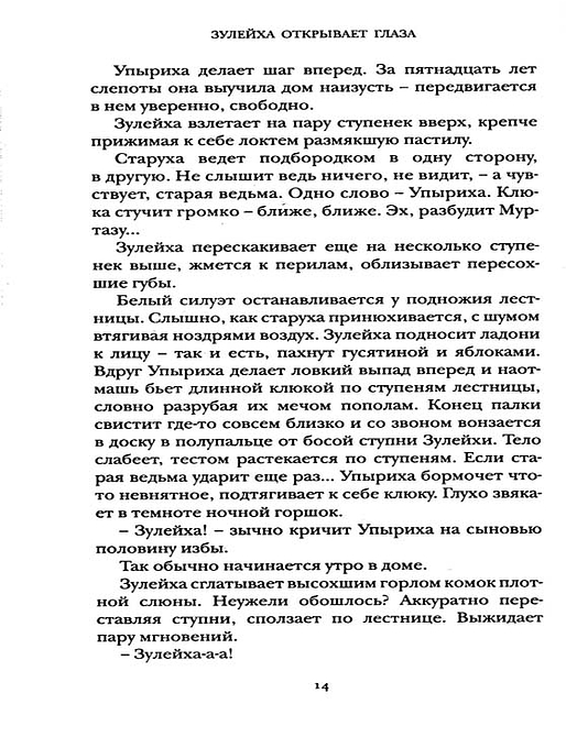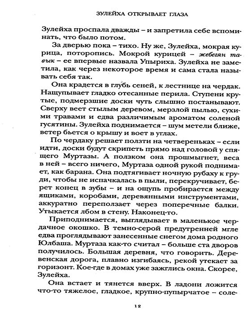 Историческая драма. Всем раскулаченным и переселенным посвящается. История жизни и любви раскулаченных переселенцев в Сибири. Предисловие Людмилы Улицкой. Роман Зулейха открывает глаза начинается зимой 1930 года в глухой татарской деревне. Крестьянку Зулейху вместе с сотнями других переселенцев отправляют в вагоне-теплушке по извечному каторжному маршруту в Сибирь. Дремучие крестьяне и ленинградские интеллигенты, деклассированный элемент и уголовники, мусульмане и христиане, язычники и атеисты, русские, татары, немцы, чуваши - все встретятся на берегах Ангары, ежедневно отстаивая у тайги и безжалостного государства свое право на жизнь. Всем раскулаченным и переселенным посвящается.