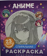 Аниме. Спиральная раскраска-антистресс с наклейками