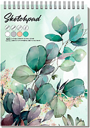 Альбом для рисования (Скетчпад) А5+ 40 л, 4 вида бумаг, арт. 67744 ЗЕЛЕНЫЕ ЛИСТЬЯ/ блок - белый офсе